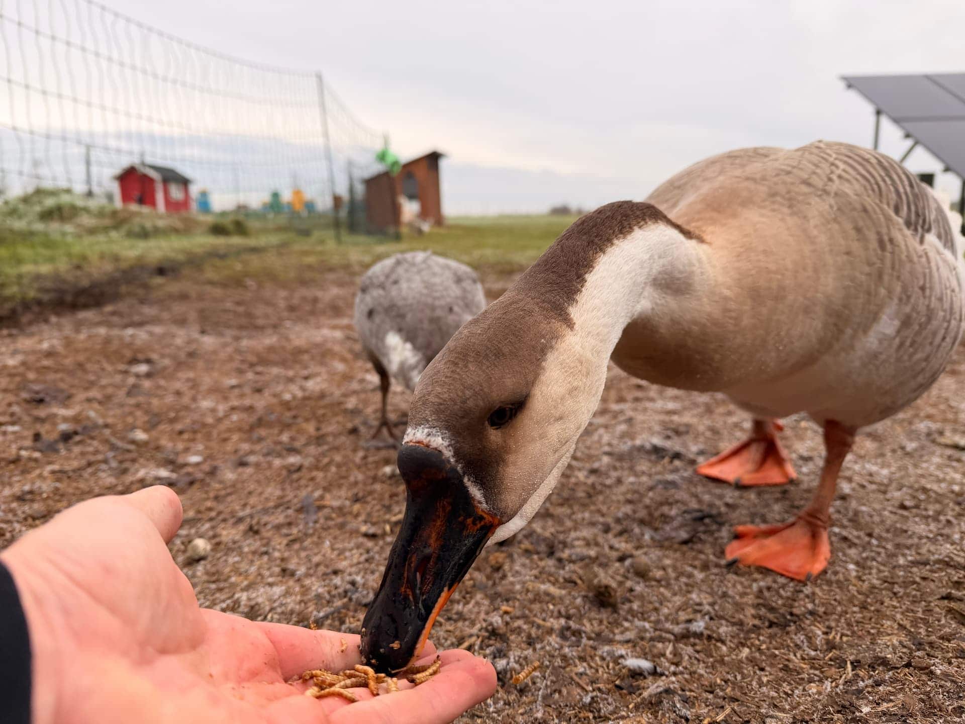 Dziś cieszą się życiem na pół hektarowej łące, gdzie mogą swobodnie się poruszać, skubać świeżą trawę i wyrażać wszystkie naturalne zachowania. Mają do dyspozycji specjalnie wybudowany domek dla gęsi z automatycznymi drzwiami, które zapewniają im bezpieczeństwo i komfort przez całą dobę.